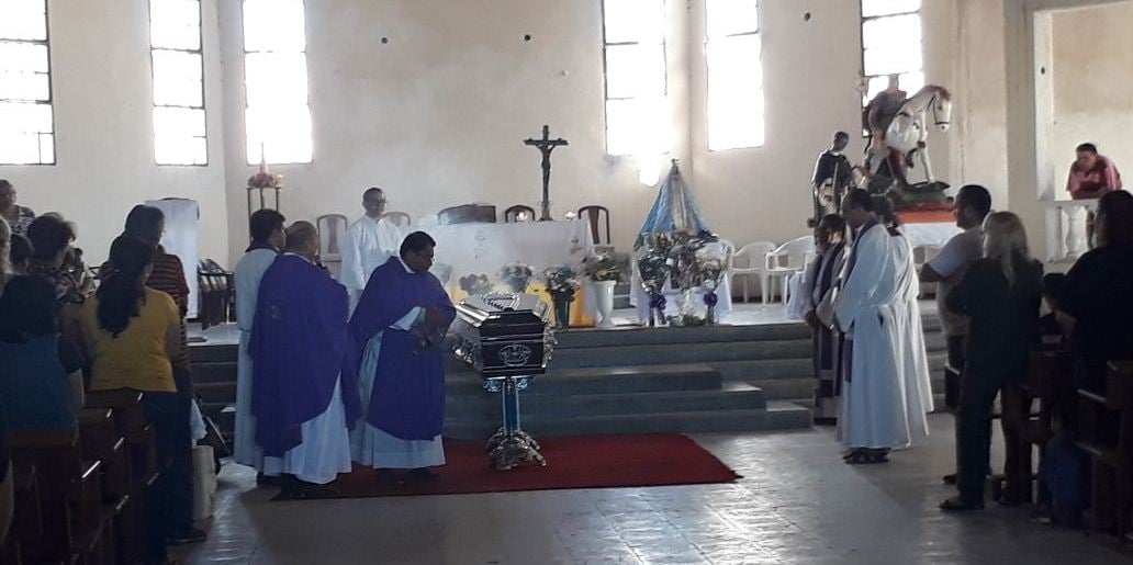 Antes de finalizar la Eucaristía, los sacerdotes presentes se ubicaron alrededor del féretro que guarda los restos mortales del sacerdote para rezarle el Responso y cantarle con fuerza “Más allá del sol,/ más allá del sol,/ yo tengo una hogar,/ hogar bello hogar,/ más allá de sol”.
