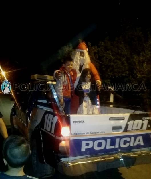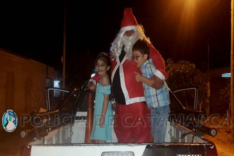 Papá Noel visitó los barrios Los Ceibos, Parque La Gruta este y oeste, Avenidas Los Terebintos y Choya, Los periodistas, UOCRA, 40 Viviendas Norte, 120 Viviendas norte, calle Maipú norte, Asentamiento Papa Francisco, Barrio La Esperanza, donde repartió bolsas con golosinas a los más pequeños.