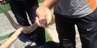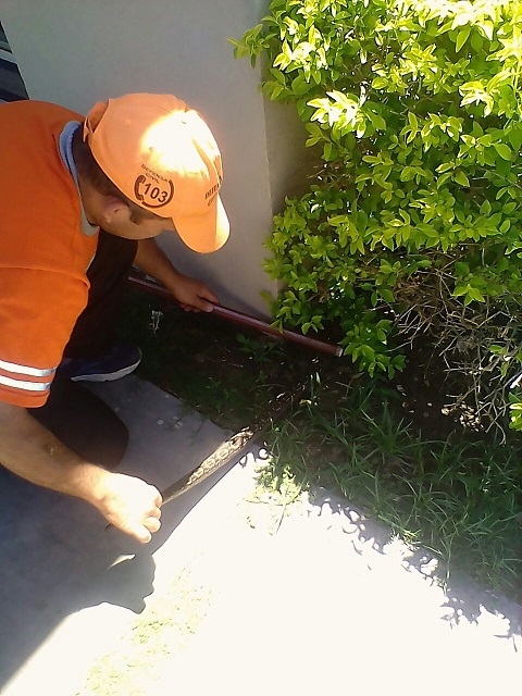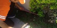 Al llegar a la vivienda de la familia Sampieri, ubicada en la esquina de Juan Pablo vera y Río Ongolí, el personal especializado constató que se trataba de una pequeña lampalagua y logró capturarla, tras haber permanecido 24 horas debajo de unos ligustros.