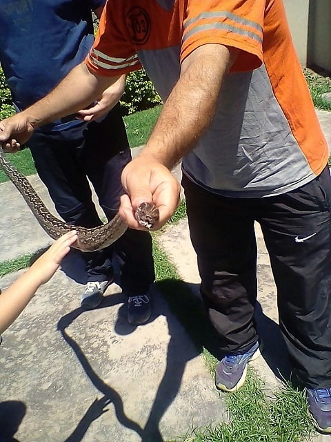 Finalmente, la serpiente (también llamada comúnmente boa de las vizcacheras) fue liberada en una zona montuosa, lejos de la urbe.