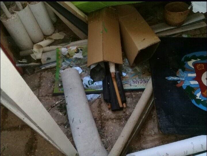 destruidos, cisterna destruida por la piedra, bomba quemada, sistema eléctrico