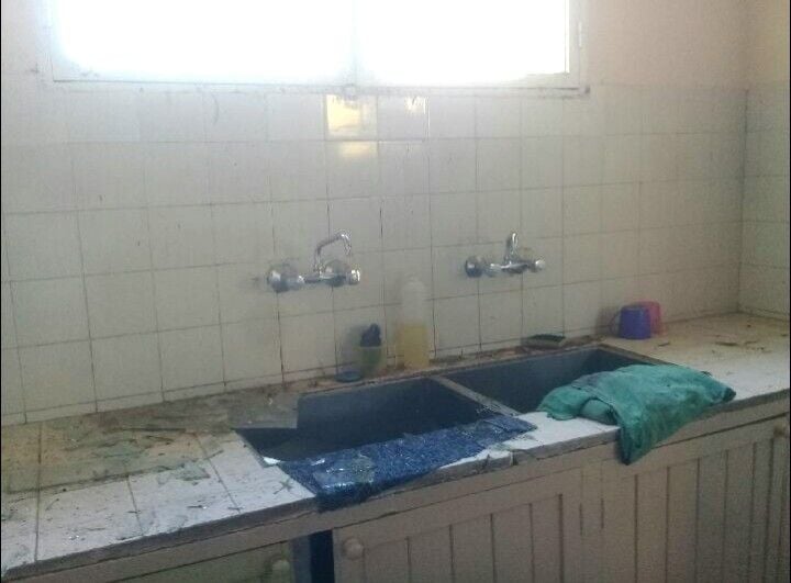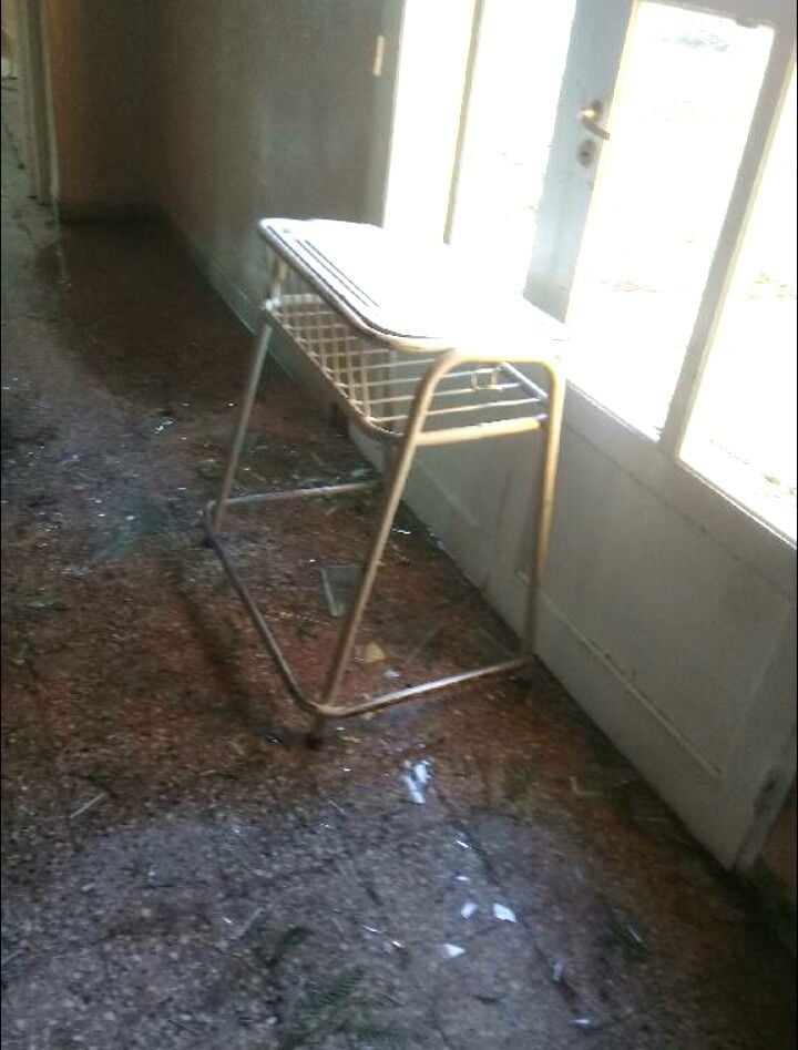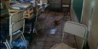 prácticamente destruido, filtraciones en el techo, tanques de reservas de agua