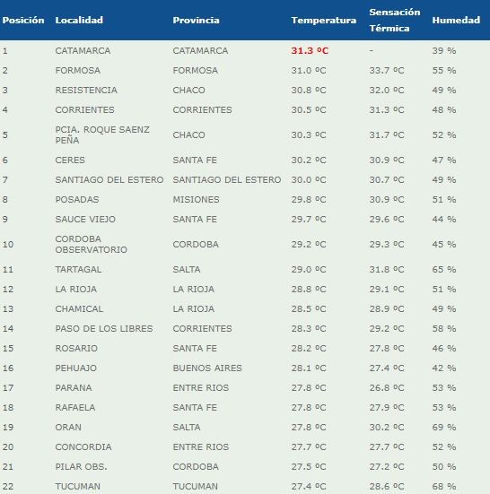 En el ranking que elabora el Servicio Meteorológico Nacional, Catamarca se ubica en la cima por ser la ciudad más caliente en la mañana en la que cientos de peregrinos llegan para honrar a la Virgen del Valle.