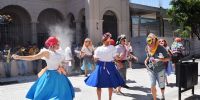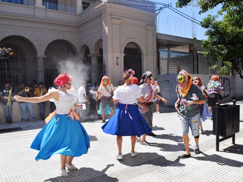la difusión del evento con el Ballet Estable, que jugó al carnaval con harina,