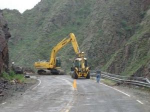 realizando retiro de derrumbes en zona de camino. Entre Las Mojarras (Santa