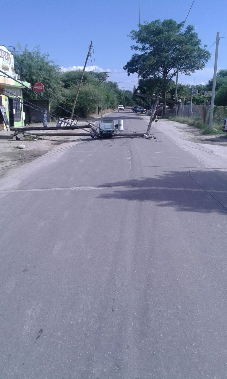 poste de madera que sostenía un transformador de 200 Kv que abastece de energía