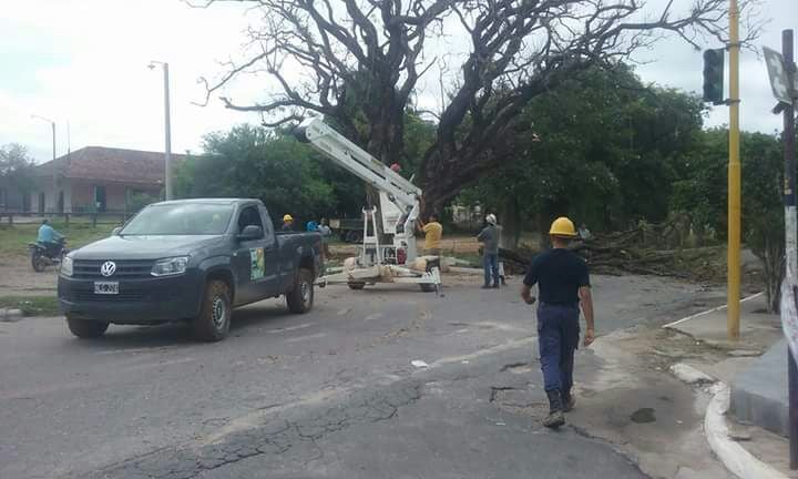 A raíz de los postes de electricidad caídos y cables cortados, producto del fuerte viento, varios sectores de la ciudad se encuentran sin servicio de energía eléctrica, aunque personal de la empresa EC SAPEM trabaja por estas horas arduamente para restablecer la luz.