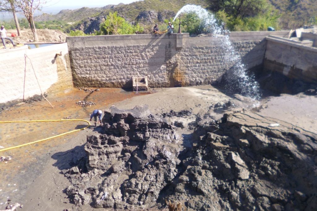 Luego de que se destrabara una compuerta, operarios de la DASI y empleados municipales trabajan diariamente para desagotar un gigantesco reservorio de agua con una capacidad de 60 mil litros pero que estaba en desuso por estar colmatado de barro. La gigantesca cisterna facilitará los trabajos de filtrado durante las crecidas del río y evitará el desabastecimiento.