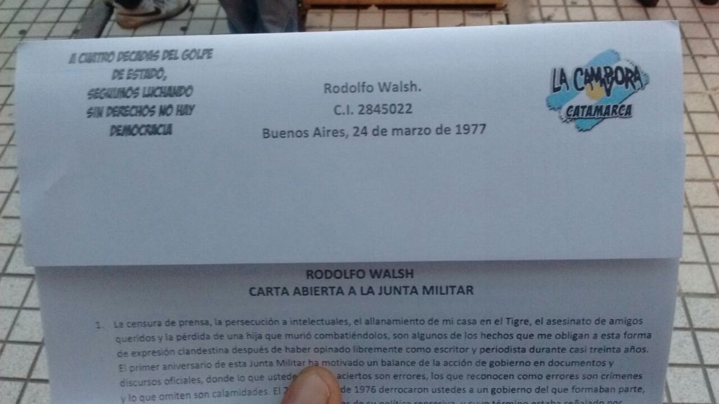 Explicó el significado del terrorismo de Estado, con su violación a los derechos más elementales de las personas, y consideró fuera de lugar cuestionar lo ocurrido, porque todo "quedó perfectamente acreditado en el juicio a las juntas militares, cuya sentencia expresa claramente que hubo un plan perverso que incluyó torturas a desapariciones.