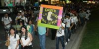 pasacalles con mensajes alusivos, marcharon por calle San Martín hasta
