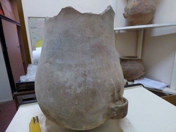 del distrito Huachaschi, una pieza arqueológica que es una urna funeraria para