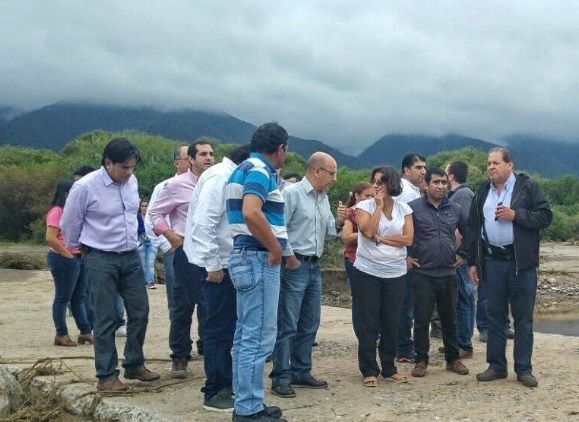 Directivos de la Subsecretaria del Agua y la Dirección de Agua y Saneamiento del Interior (DASI) que dependen del ministerio de Servicios Públicos, recorrieron hoy junto a la gobernadora de la, Lucía Corpacci, la zona afectada por las crecientes de los ríos en los departamentos Paclín y Valle Viejo.