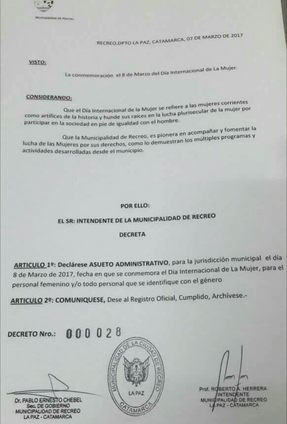 martes, 7 de marzo de 2017 13:41 martes, 7 de marzo de 2017 13:41 El asueto "alcanza a todo el personal femenino y personas que se identifiquen con el género", según informaron.