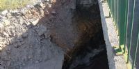 La División especializada de Defensa Civil actuó inmediatamente y cortó la ruta 38 debido a que una parte del puente esta suspendida en el aire y no resistirá transporte de gran porte.