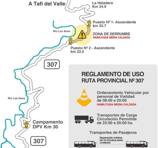 Si bien las lluvias de fines de marzo provocaron daños graves en uno de los puentes de la ruta 307, el tránsito se restituyó y se puede circular con precaución, aunque bajo ciertas normas y con algunas restricciones.