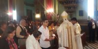 representa la luz de Cristo. El Obispo marcó una cruz sobre el Cirio, y en sus
