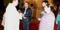 el altar; y compartieron el pan eucarístico, como también el canto final de