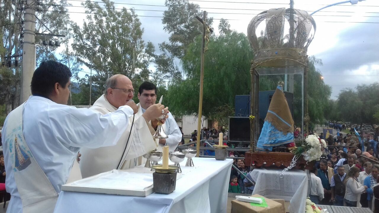 Mons. Luis Urbanc, quien llevaba en brazos a la Imagen réplica de la Virgen del