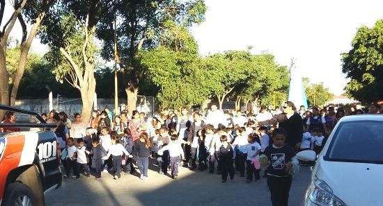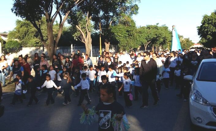 Los pequeños marcharon por las calles de la localidad cantando, para luego, frente al templo parroquial de Nuestra Señora de Luján, realizaron diferentes actividades para honrar a la Madre Morena.