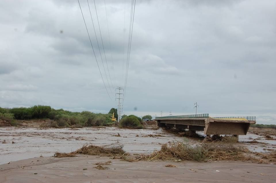 la cual ante el avance de las aguas del río Santa Cruz se procedió a cortar, preventivamente, para que no arrastre toda la postación.