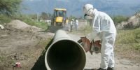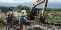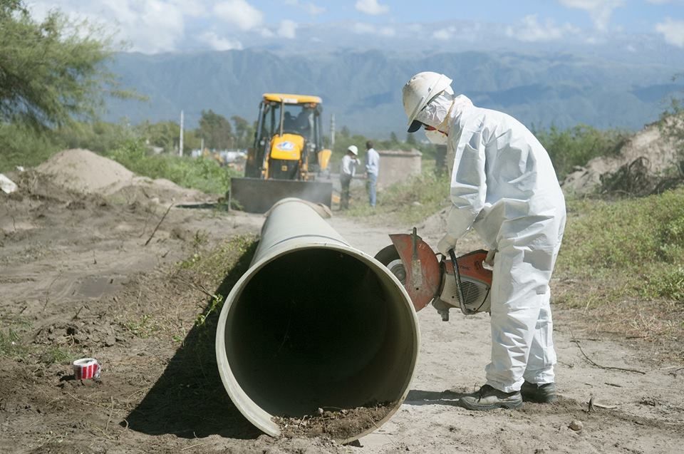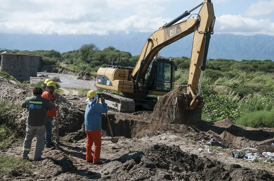 La empresa Aguas de Catamarca SAPEM informa que continua trabajando en las márgenes del Río del Valle para restablecer la vinculación de las cañerías de impulsión que permitan poner en funcionamiento el rebombeo 1.