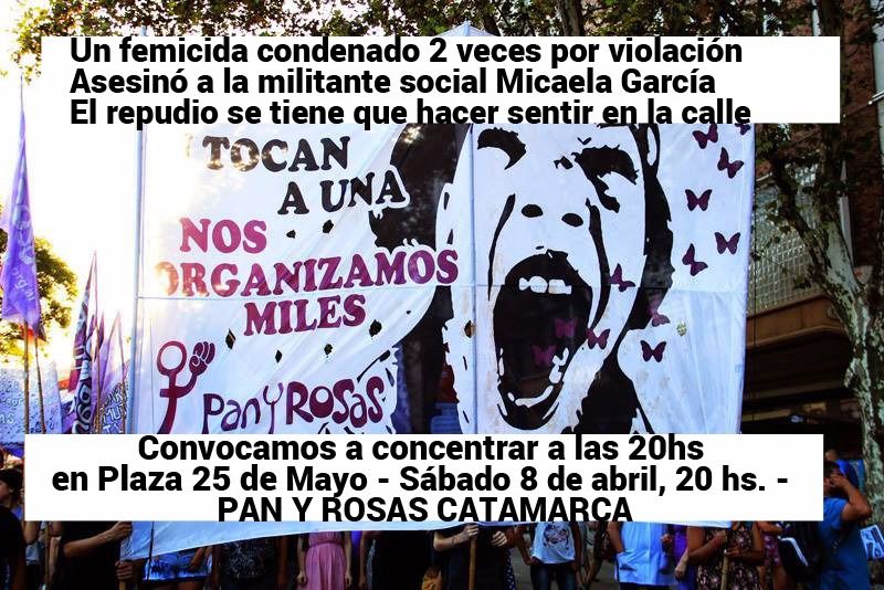 militante Micaela García. La convocatoria se realizará esta noche, a las 20