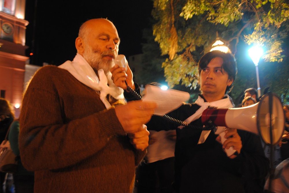 artista Oscar Németh, que leyera las adhesiones al acto y un pronunciamiento