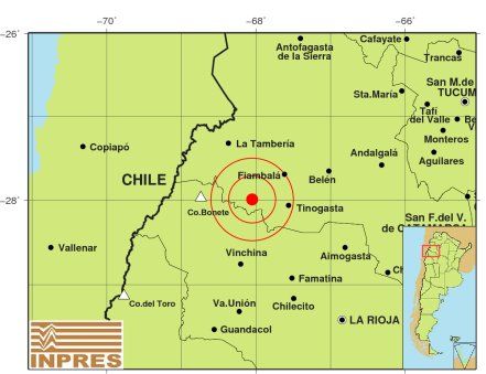 Epicentro: 197 km al NO de La Rioja, 233 km al O de San F. Del Valle De Catamarca, 49 km al O de Tinogasta. -27.990 (lat) -68.052 (long)