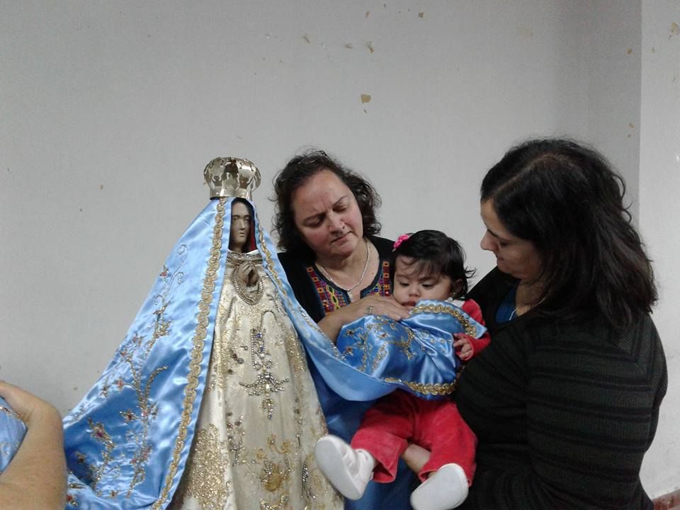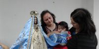 muchas madres embarazadas junto a la Imagen de la Virgen del Valle, a quien se