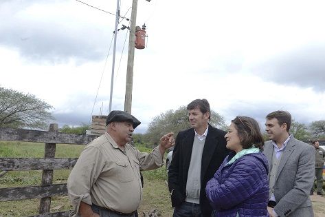 La Gobernadora Lucia Corpacci, junto al ministro de Servicios Públicos, Guillermo Dalla Lasta, y el Presidente de la empresa Energía Catamarca SAPEM, Raúl Barot, visitaron este martes el paraje "Puesto del Medio” y llegaron hasta la casa de la familia de don Luis Carrizo, zona donde por primera vez cinco familias podrán disfrutar del servicio de energía eléctrica.