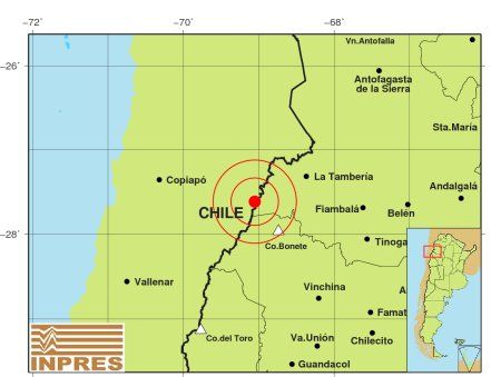 Epicentro: 294 Km. al NO de La Rioja, 339 Km. al O de San F.