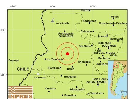 Epicentro: 207 Km. al O de San Miguel De Tucumán, 214 Km. al