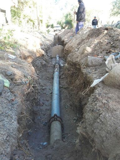 El personal de la DASI trabajó en estos días en la desobstrucción de caños de conducción de 160 diámetros, que se encontraban sin funcionar debido a la acumulación de larga data de raíces en el interior de un tramo de los conductos.