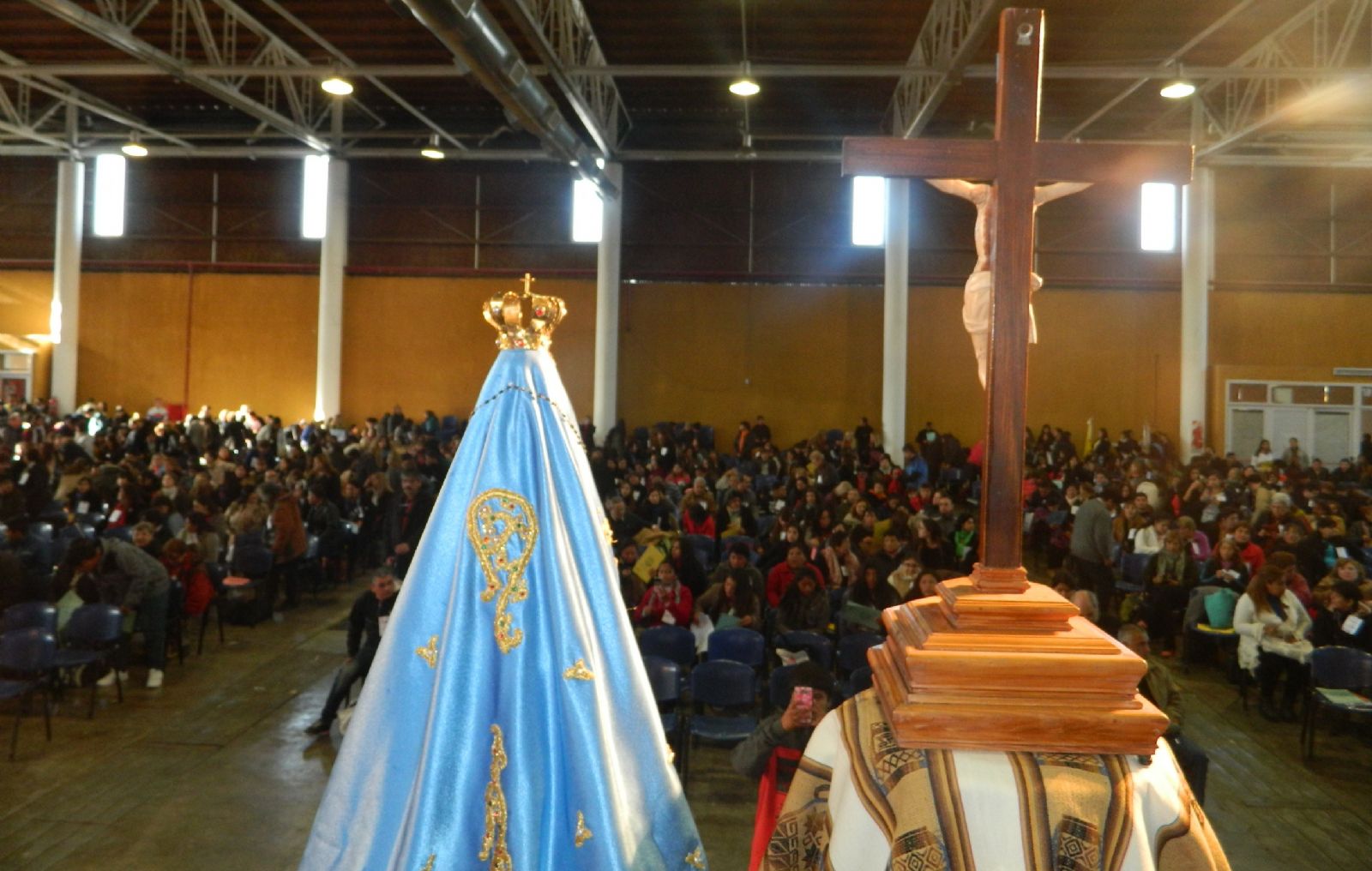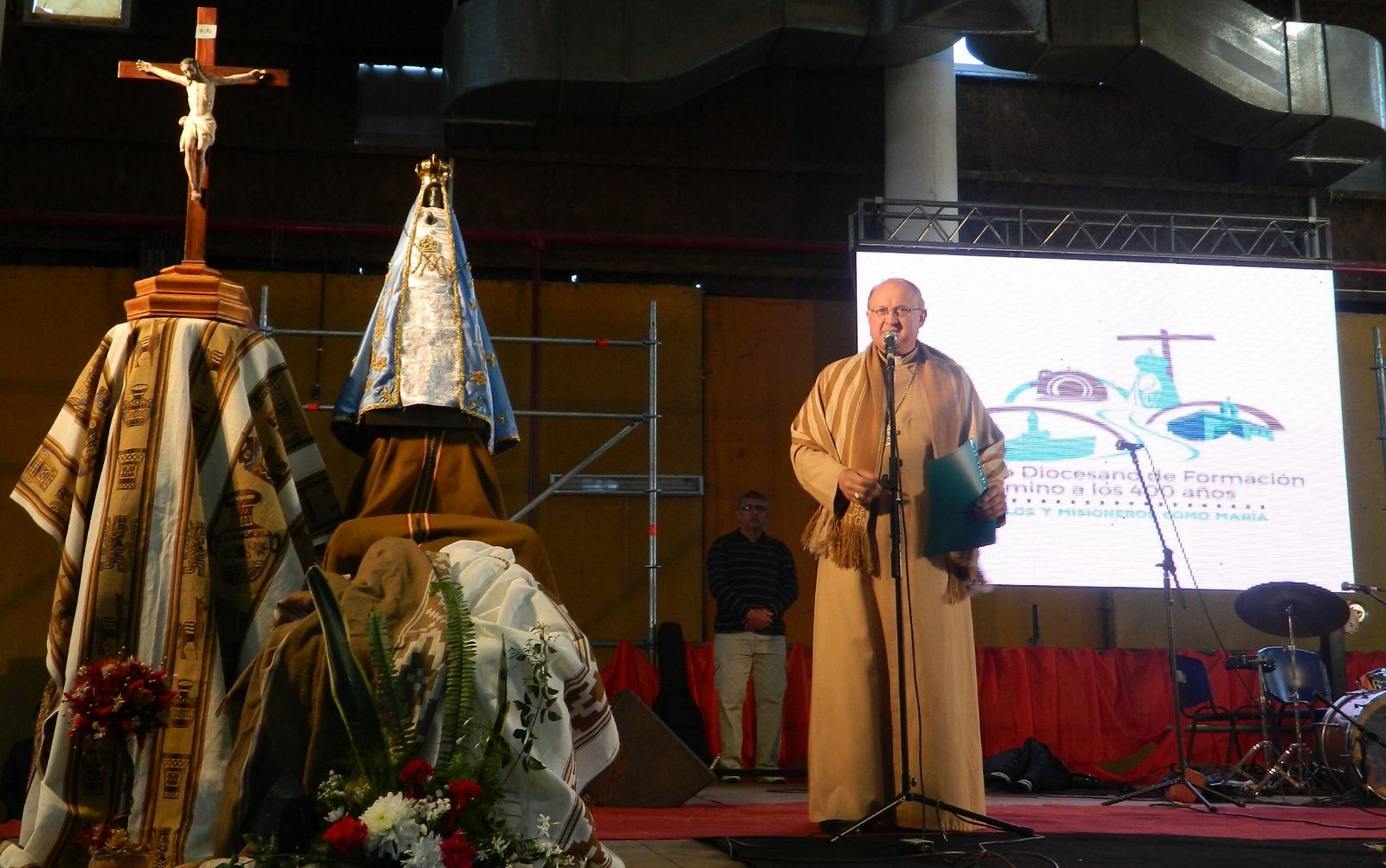 sitial dispuesto en el escenario y bendecida por el Obispo, como detalle se dio