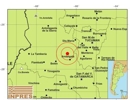 Epicentro: 135 km al SO de San Miguel De Tucumán, 144 km al NO de San F. Del Valle De Catamarca, 33 km al NO de Andalgalá. -27.309 (lat) -66.443 (long)