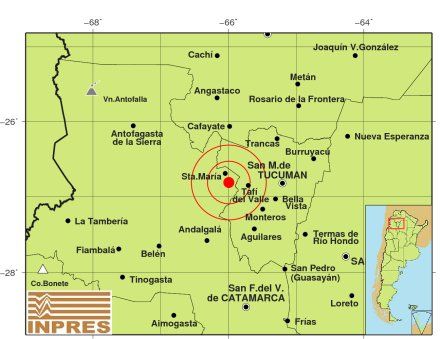 Epicentro: 79 Km. al O de San Miguel De Tucumán, 183 Km. al