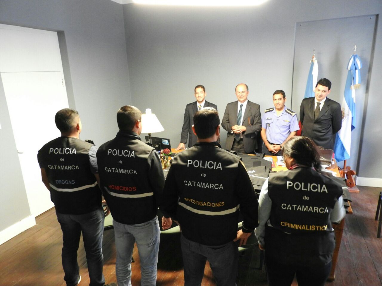En tal oportunidad, Marcos Denett, junto al Jefe de Policía, Orlando Quevedo y el titular del Servicio Penitenciario, Daniel Romero, hicieron entrega de dicha indumentaria al jefe de la División Homicidios; Comisario Ricardo Escalante, de Criminalística, Marcelo Martínez Córdoba; de la División Drogas, Crio. Alfredo Kunz, y de la División Investigación lo hizo el Crio. Enrique Ramos.