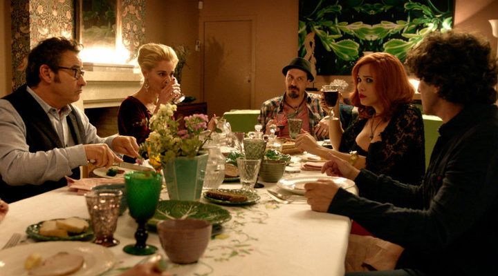 próxima película. En mitad de la cena aparece el ex de la anfitriona con su