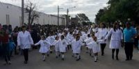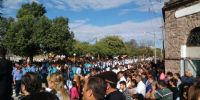 La celebración comenzó con la simbólica llegada de un tren que emocionó a los presentes, y luego el Cura Párroco Gustavo Flores, pronunció la Invocación Religiosa.