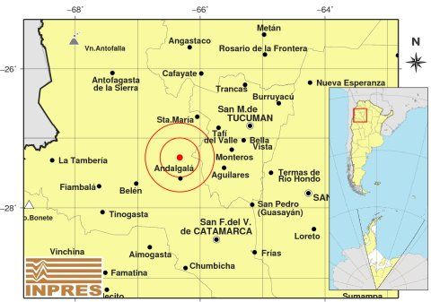 Epicentro: 123 Km. al SO de San Miguel De Tucumán, 142 Km.