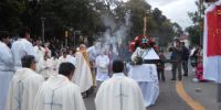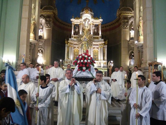 Durante el recorrido rezaron y cantaron, deteniéndose en los cuatro altares levantados en las intersecciones de las calles que circundan el principal paseo público de la ciudad, en una verdadera manifestación pública de fe en Jesús Hostia.