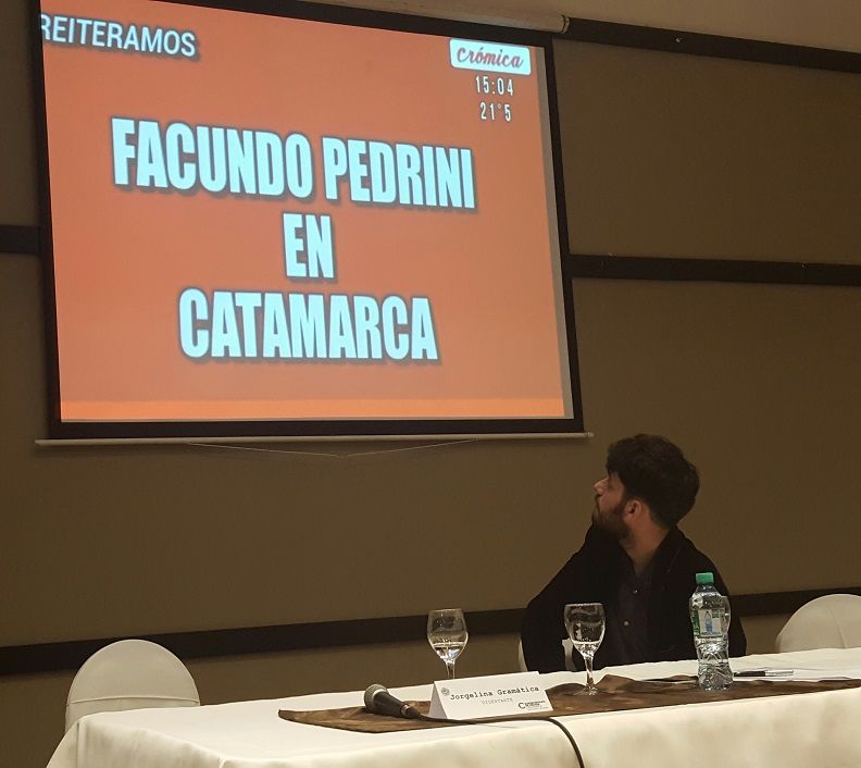 A continuación, el periodista detrás de las placas rojas de Crónica TV, Facundo Pedrini, se refirió a la señal de noticias y el humor en el periodismo. Al respecto, sostuvo que "Crónica TV fue pre-Twitter porque sacó las placas rojas con menos de 140 caracteres 20 años antes”, y señaló que "Crónica toma posiciones, ya sean sociales, históricas o culturales”.