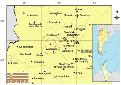 Epicentro: 135 km al O de San Miguel De Tucumán, 157 km al NO de San F. Del Valle De Catamarca, 46 km al NO de Andalgalá. -27.199 (lat) -66.492 (long)