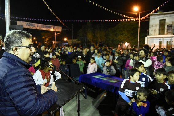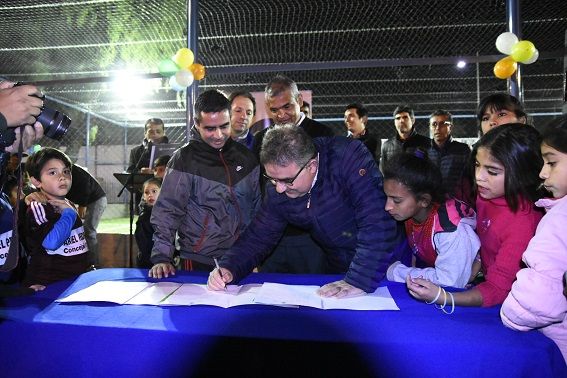 Al cabo del acto formal, el Intendente improvisó un picadito con los chicos que después siguieron disfrutando del espacio que ahora es suyo.
