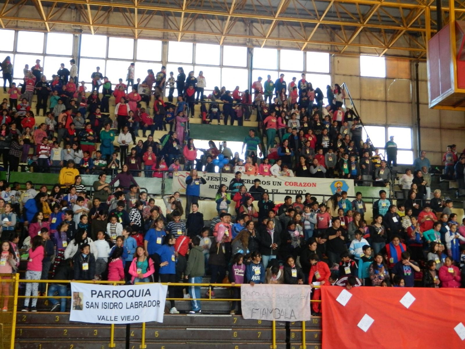 En horas de la mañana, llegaron al Polideportivo Fray Mamerto Esquiú los niños de las parroquias de Capital y del interior catamarqueño, con distintivos de diferentes colores y las banderas de sus comunidades, para compartir la oración hecha juego y canción, actividades en grupos y profundos momentos de oración junto con sus catequistas.