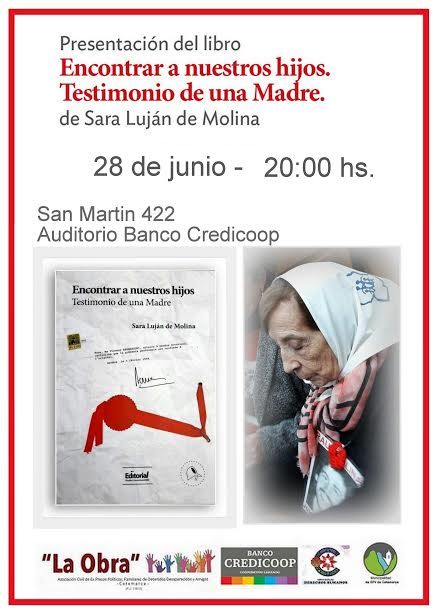 Libro "Encontrar a nuestros hijos. Testimonio de una Madre” de Sara Luján de Molina, madre de Raúl Mateo Molina