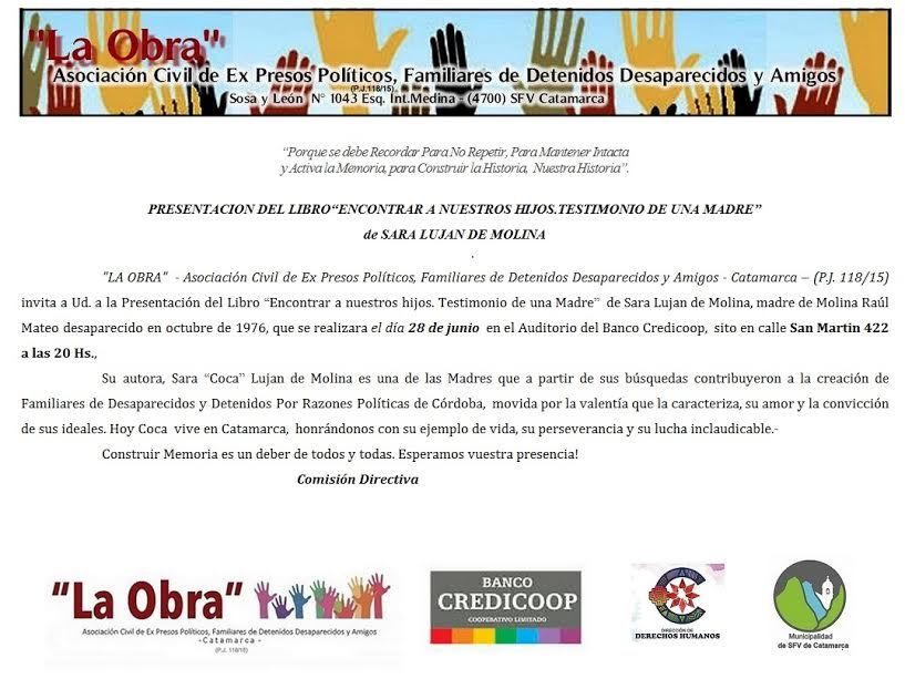 Desaparecidos y Amigos de Catamarca - PJ 118/15) invita a la presentación del