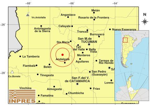Epicentro: 130 km al O de San Miguel De Tucumán, 149 km al NO de San F. Del Valle De Catamarca, 38 km al N de Andalgalá. -27.253 (lat) -66.421 (long)