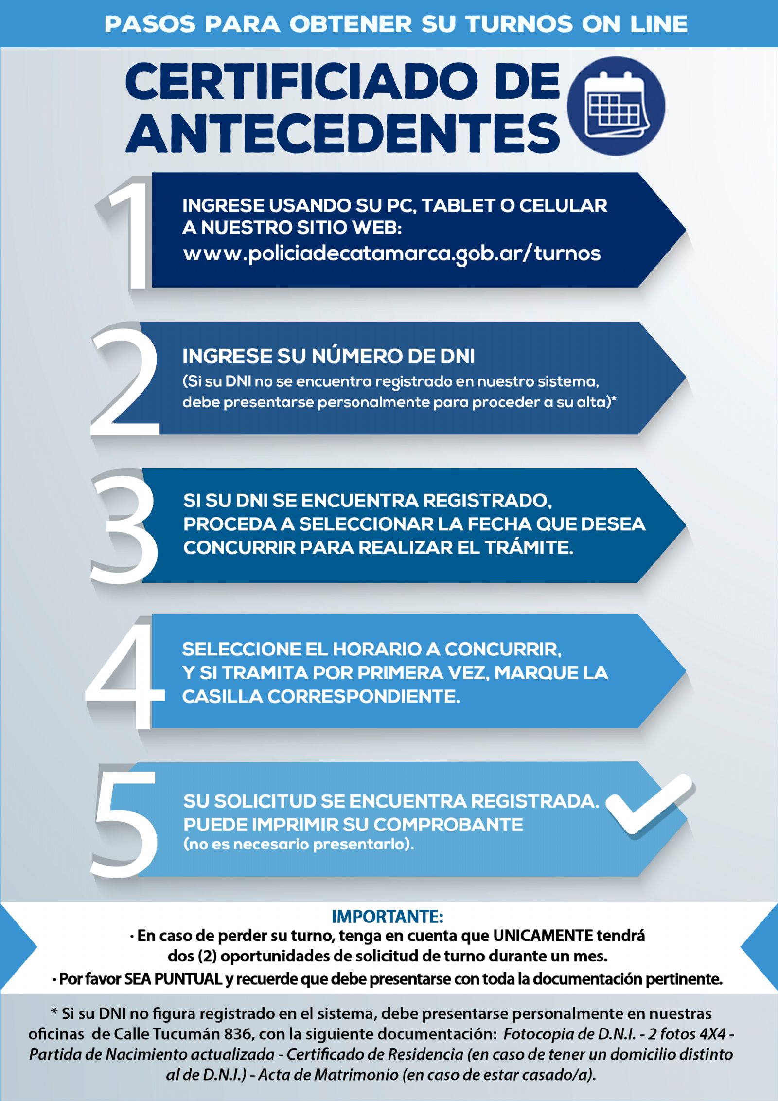 Solicitud de turnos Vía Internet (www.policiadecatamarca.gob.ar/turnos