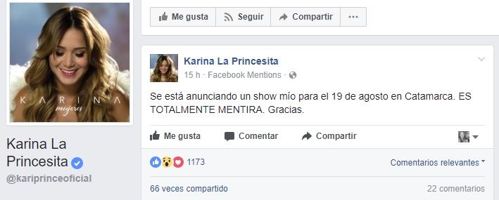 Princesita” desmintió su show en Catamarca. Dijo que "es totalmente mentira”.